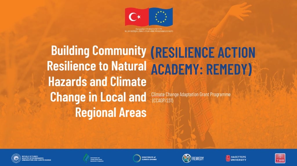 'Building Community Resilience to Natural Hazards and Climate Change in Local and Regional Areas (RESILIENCE ACTION ACADEMY: REMEDY)' is funded under the Climate Change Adaptation Grant Program (CCAGP) and is being carried out in partnership with Hacettepe University and the Union of Turkish Municipalities.